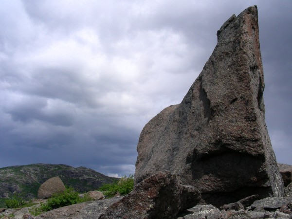 One of the many large and dramatic boulders dotting the landscape, July