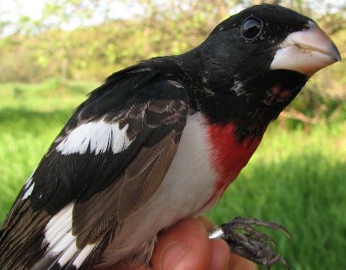 Banders-in-charge: Marie-Anne Hudson, Barbara Frei Notes: Pleasant weather despite some rather chilly mornings and lots of birds made this week quite wonderful. For those of you placing bets for the next new species to appear at MBO, it’s last call: we added TWO new species this week! Any guesses? None of us would have predicted that Lesser Yellowlegs and Black Tern would be the two species to bring the site total up to 193, but there you have it! Seven more to the big 2-0-0… Sixteen species, including our two most famous additions, were added to the season/year list: Sora, Virginia Rail, Green Heron, Spotted Sandpiper, Chimney Swift, Great Crested Flycatcher, Northern Rough-winged Swallow, Veery, Blackpoll Warbler, American Redstart, Northern Parula, Cape May Warbler, Wilson’s Warbler, and Scarlet Tanager. Banding-wise things have picked up since last week. We banded more than twice as many individuals as last week, though couldn’t quite catch up to last year’s weekly total of 202 birds banded during the same period - though on the whole, the spring 2008 season remains ahead of the pace compared to past years. This week we added 11 new species to our list of species banded this season. Another first for the site was the return of a House Wren! We’re sure it’s busy cramming sticks into one or more of our nest boxes as we write these words. Our Tree Swallows have begun laying this week, and our Black-capped Chickadees, Canada Geese and Mallards have been on eggs for at least a week now, if not more. Although we have yet to see them nesting, some of the species returning to the site this week, such as the Rose-breasted Grosbeaks, Common Yellowthroats, Warbling Vireo, and previously mentioned House Wren may very well soon be! We’re looking forward to seeing the first fledgers of the season! There were many other highlights this week: spotting two Virginia Rails carefully stepping amongst the cattails on the far side of Stoneycroft, having a little brown bat zipping around our ears first thing in the morning near the cabin, realizing that the leaves have come out overnight and the site has gone from brownish to vibrant green (and pink due to the apple blossoms), having 30+ warblers gleaning bugs off the cottonwood leaves all around us, banding five Brown-headed Cowbird males in two net rounds, topping 60 species seen and heard in one morning, and having a wonderful visit by nine keen MBOers-to-be on Mother’s Day weekend, coordinated by the Morgan Arboretum. We had a great time discussing the basics of banding and showing off our birds. Last but certainly not least, we had a very special return to MBO in the form of an after-second-year male Baltimore Oriole, first banded in 2005 and not seen since! These recoveries are only one of many interesting facets of banding, but usually the one that produces the most excitement. This week’s top 10 banded species list again shows the influx of new species, with four new entries: Yellow-rumped Warbler (Myrtle form), Baltimore Oriole, Brown-headed Cowbird and Blue-headed Vireo. The number of Myrtles banded gives an indication of how many there are around, since most don’t even get caught! The discrepancy between this week and last year’s week 7 comes from the blackbirds. Last year we caught 65 in a week, compared with this week’s 33. Granted we’ve had some escapes as these powerful birds are able to use our nets like trampolines, but they seem to be settling down on territory now, and we’ve had fewer flying high over the site. This week’s top 10 observed species list hasn’t changed much from last week’s, with the exception of an invasion of Yellow-rumps and American Goldfinches. The Canada Goose lines have dropped dramatically, as they did last year at this time, while the White-throated Sparrows continue to hang around later than we would expect. Amazingly, the Eastern White-crowned Sparrows that were still around in fair numbers at the beginning of the week vanished overnight two days ago, making our J-trap seem quite empty (they really seemed to like the J-trap - the 15 we banded during those few days were nearly as many as in the first three spring seasons combined!)