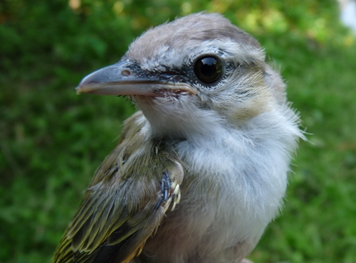 Although we're into the third week of "fall", there are still "babies galore", as was noted in our daily log at one point this week. Defining the start of fall as the beginning of August is necessary to get full coverage of some of the earlier migrants, but of course many local breeders still are going strong through all of what is summer here. The latest of those are Cedar Waxwings and American Goldfinches, some of them still incubating, but the very young Red-eyed Vireo above indicates that other species were still nesting into August as well.