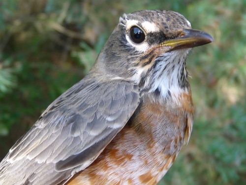 HY females are generally the pales of all American Robins. Orange on the breast tends to be pale to moderately dark, but usually is relatively limited in extent, with lots of gray and white. There is usually minimal dark brown or black on the face and crown. However, beware that some intermediates in fall may not be reliably sexed.