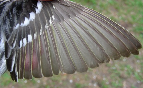 The wing of after-hatch-year females is quite uniform in appearance; note the distinct greenish edging to the feathers.