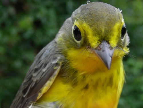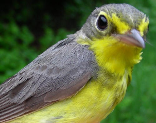 Moult limits on hatch-year Canada Warblers usually occur between the primary coverts and greater coverts, with the latter being bluish-gray, contrasting with the dull brownish-gray of the unreplaced primary coverts (note, however, that in early fall the colour distinction may be subtle because the primary coverts are also still relatively fresh and have not yet faded much).