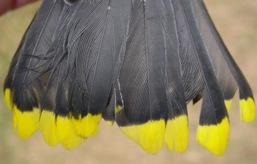 Although there is considerable overlap, ASY males on average have the longest yellow tips on their rectrices. Although ASY rectrices are on average slightly more rounded at the tip, the difference is generally too slight to be of use for ageing.