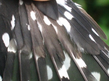 the contrast between the fresher black coverts with "full" white spots