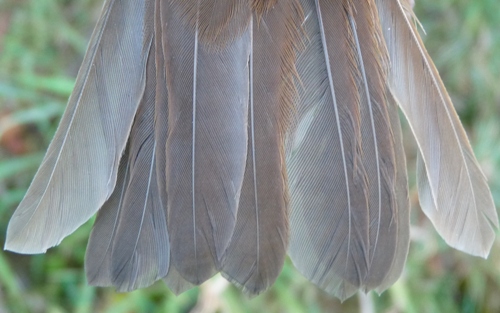A typical HY Hermit Thrush wing, showing distinct shaft streaks on the inner greater