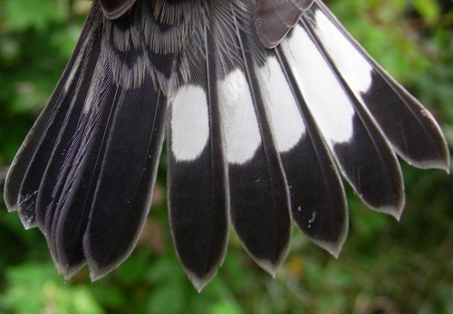 This is a typical after-hatch-year male tail, with broad rectrices that are rounded at the tip, and an extensive white patch on r2 almost as large as that on the outer four rectrices.