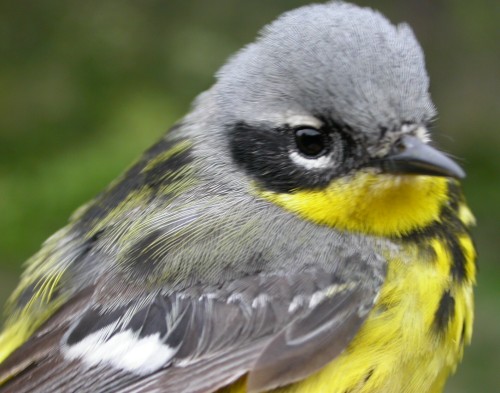 Female Magnolia Warblers in spring have a gray to blackish mask, distinctly paler than that of males. Age is best confirmed by looking at the wings.