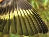 Note the slightly narrower and more pointed primary coverts on this hatch-year wing, compared to after-hatch-year birds. Also, the primary coverts are visibly paler than the adjacent greater coverts. Among hatch-year birds, the extent of yellow on the primaries can be used to separate sexes in extreme cases; the individual below is near the upper end of the range and is therefore very likely a male.