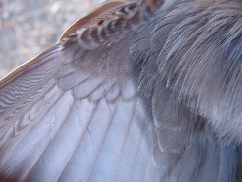 between the greater underwing coverts and adjacent feathers. Note that occasionally, as in the second example below, it appears that some brown juvenile feathers are retained among the primaries and/or secondaries.