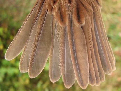 AHY/ASY birds generally have broader rectrices than SY birds, as shown in the second photo below. However, by spring the tips can be quite abraded, and the feathers often look quite tapered, as for SY birds, and thus tail shape should be used with caution for ageing, and in combination with the wing. Note too that the presence of growth bars across the tail is NOT useful, as the photo of a known ASY bird below illustrates.