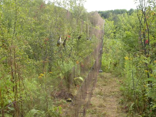 The two G nets were added to MBO in August 2005. G1 is perpendicular to the shoreline of Stoneycroft Pond, and slopes gently down toward it. On either side are buckthorns and other shrubs only slightly taller than the net. This net can be exceptional for warblers, catbirds, and orioles early in fall migration. Across the census path from G1 is G2, extending further up the slope, between hawthorns, buckthorns, and elms. It is one of the best vireo nets at MBO and also catches many sparrows and warblers. However, due to the distance from other nets, G is not operated as a standard part of the migration monitoring protocol.